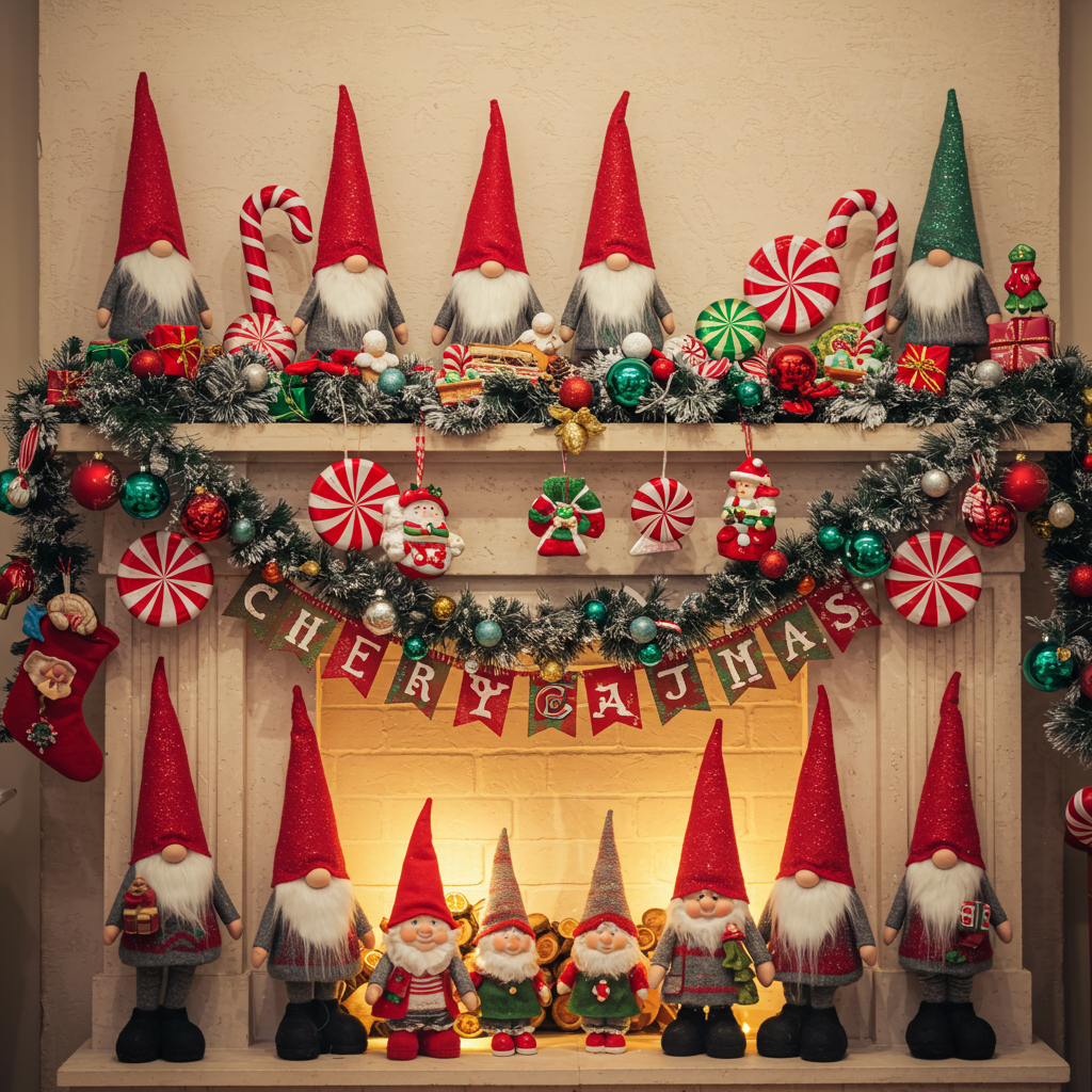 To create whimsical wonderland vibes embrace playfulness without reservation! Introduce quirky characters like Santa gnomes peeking out from behind oversized candy canes while bright colors dominate every element present! Use polka-dots patterns alongside glittery components giving life back into ordinary spaces making them extraordinary! Consider layering multiple fun textures—from faux fur blankets draped casually displayed below fanciful figurines bringing festive cheer alive!
