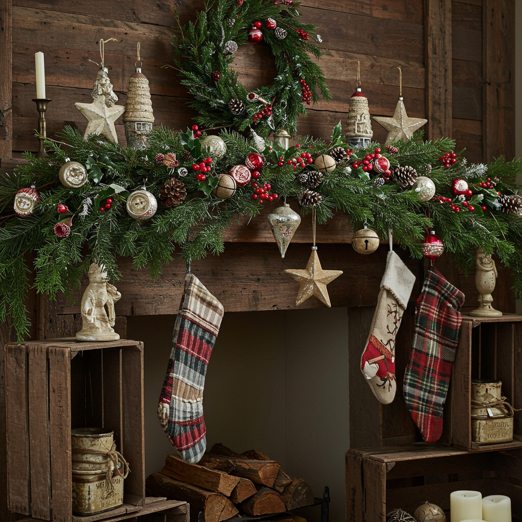 - How can I achieve rustic charm on my Christmas mantel?