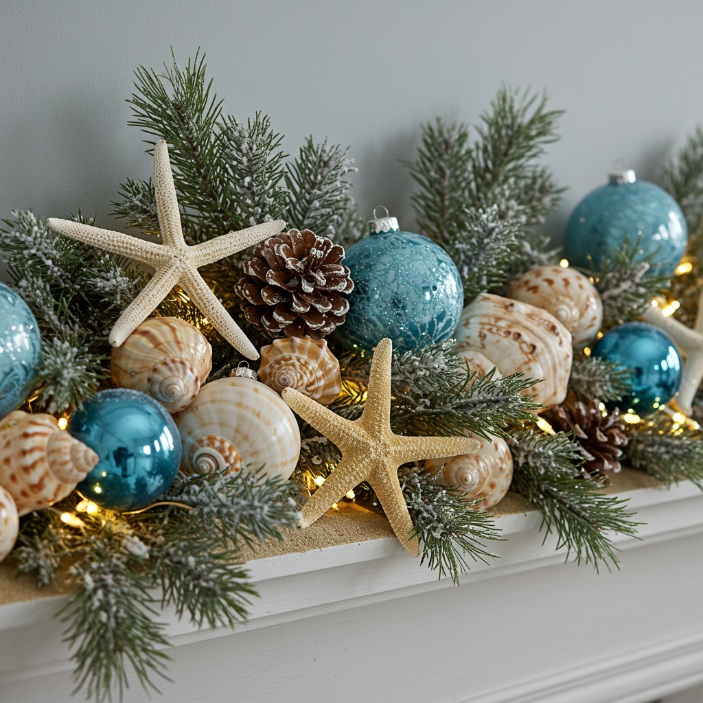 For those blessed with proximity to coastal views even in December may find themselves inspired by seaside treasures! Think outside traditional colors—incorporate blues mixed with sandy neutrals into your palette! Use starfish accents combined harmoniously alongside classic red-and-white striped decorations reminiscent of beach umbrellas! Seashells can serve as eye-catching centerpieces while driftwood provides striking visual interest when used alongside natural twinkling lights strung gracefully above!