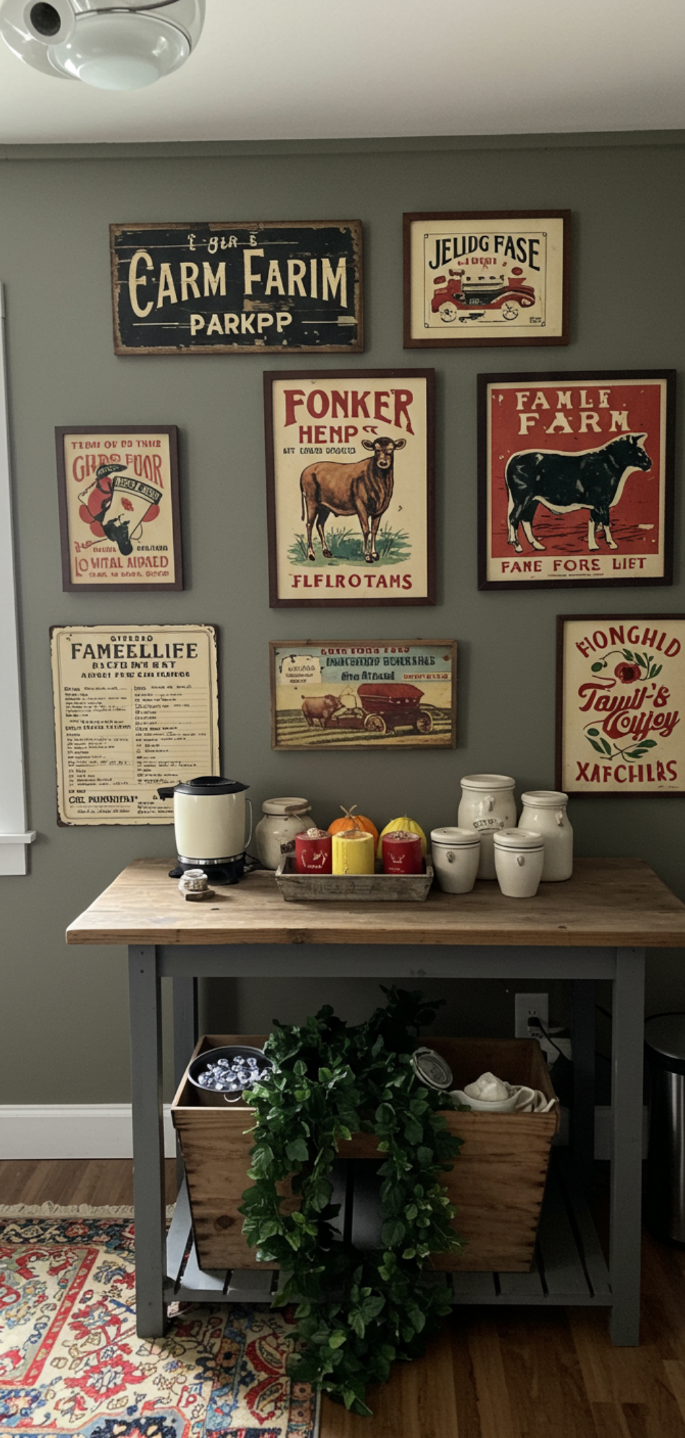 Incorporate wall art that reflects farm life or culinary themes—think vintage signs, framed recipes, or even art made from reclaimed wood—to add personality to your walls while reinforcing that cozy atmosphere! After hanging several vintage farm-themed prints in my own kitchen this year, visitors love taking photos beside them—it sparks conversation about simpler times spent on family farms!