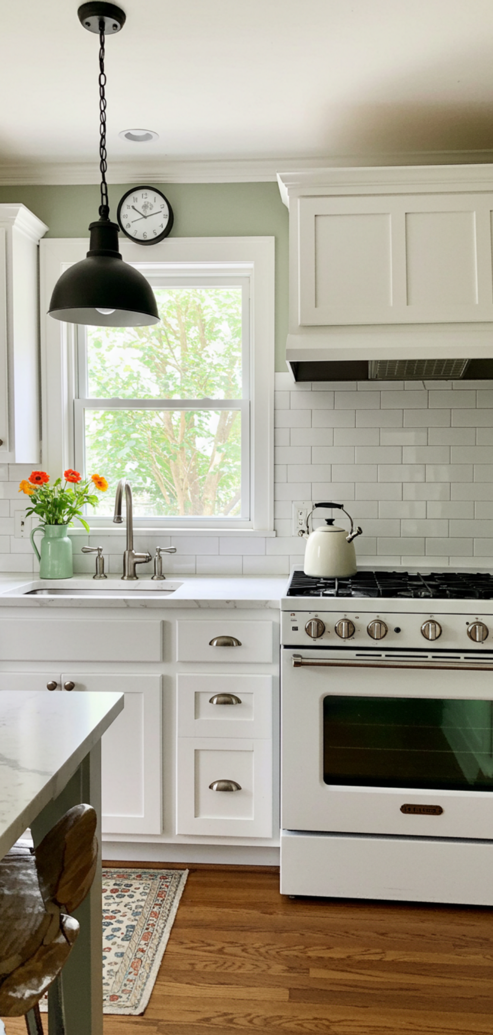 Lighting plays an essential role in setting the mood of your kitchen. Opt for statement fixtures like wrought iron chandeliers or pendant lights made from natural materials that echo your farmhouse theme. When I switched to industrial-style pendant lights above my island, they became conversation starters during dinner parties—everyone admires their unique design while enjoying delicious food below them.