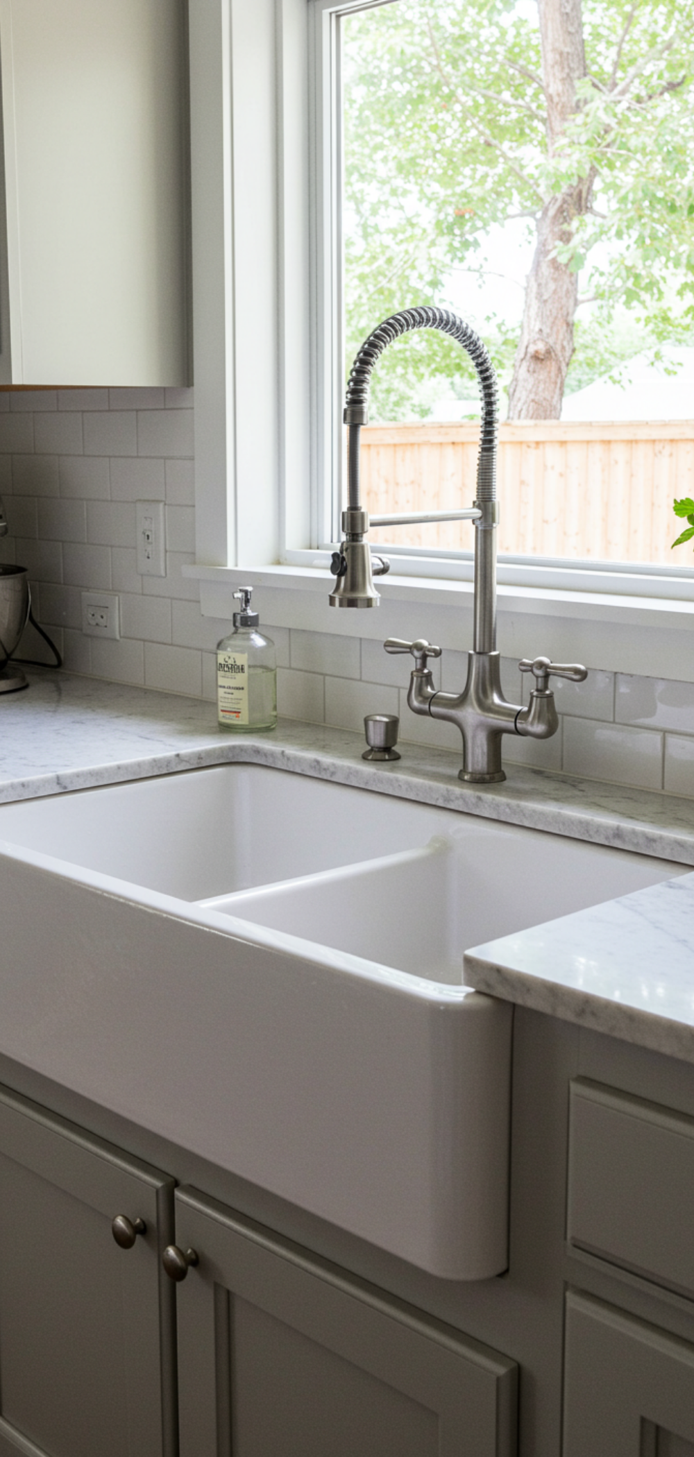 A classic farmhouse sink adds both style and functionality to your kitchen space by providing ample room for washing dishes or preparing meals. When we installed an apron-front sink during our renovation project, it immediately became the focal point of our kitchen—everyone loves how practical yet charming it looks!
