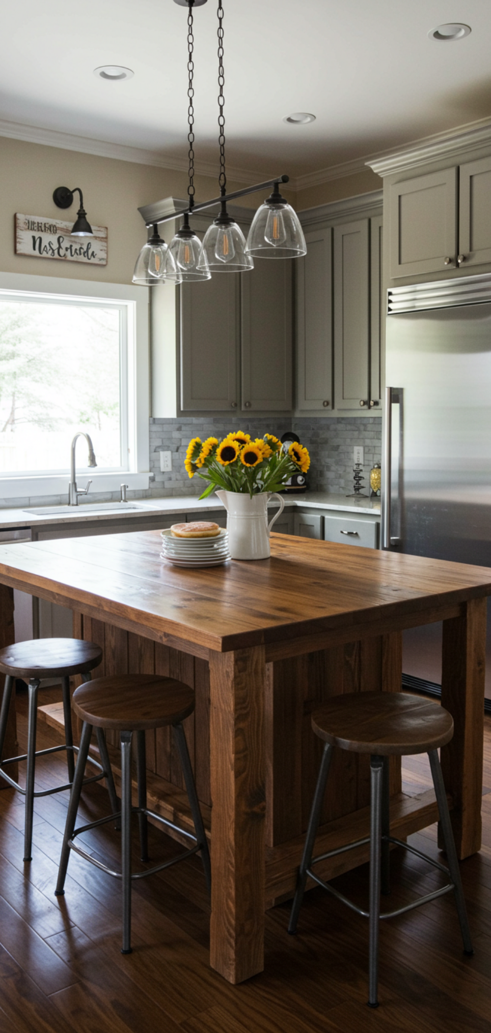 Choose a rustic kitchen island as both an aesthetic piece and practical centerpiece for meal prep or casual dining experiences with family or friends. My neighbor recently built her own wooden island complete with bar stools around it—now it’s their go-to spot for weekend brunches where laughter fills the air over pancakes every Sunday morning!