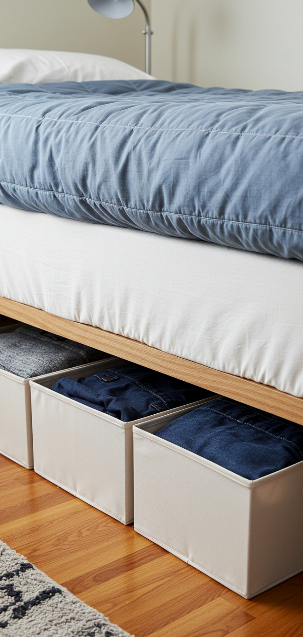 One often-overlooked area in small apartments is under the bed. Utilize this valuable space by investing in rolling bins or drawers designed specifically for under-bed storage. This hack was life-changing for me during college; I stowed extra bedding and seasonal clothing beneath my bed, freeing up precious closet space for everyday essentials while keeping things out of sight but easily accessible.