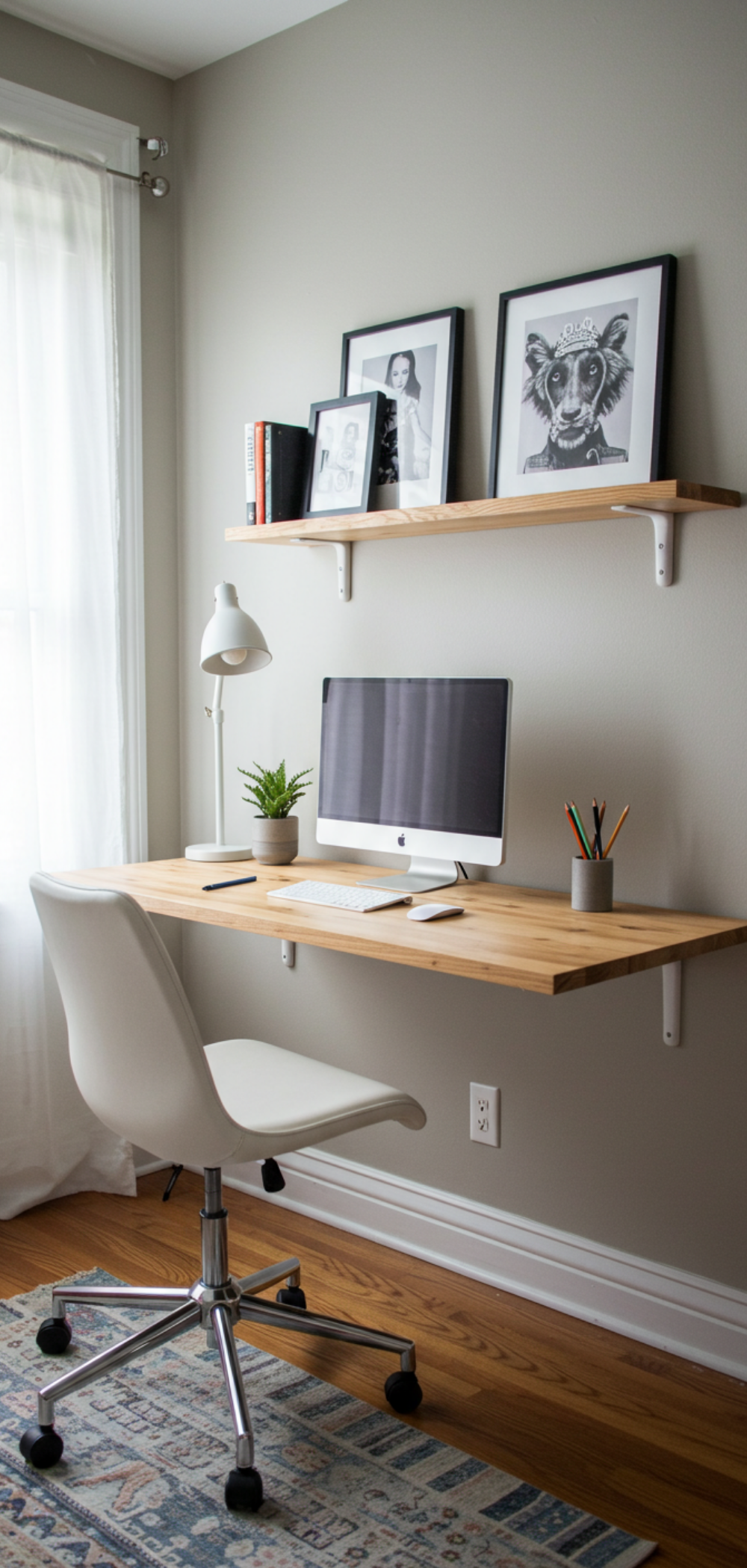 If working from home is part of your routine, consider installing a floating desk on your wall instead of using bulky furniture that takes up floor space. These desks provide ample workspace without overwhelming your environment, allowing you to create a productive nook wherever needed! My own floating desk has worked wonders—friends have even asked me to help them install one after seeing how seamlessly mine fits into my tiny bedroom!