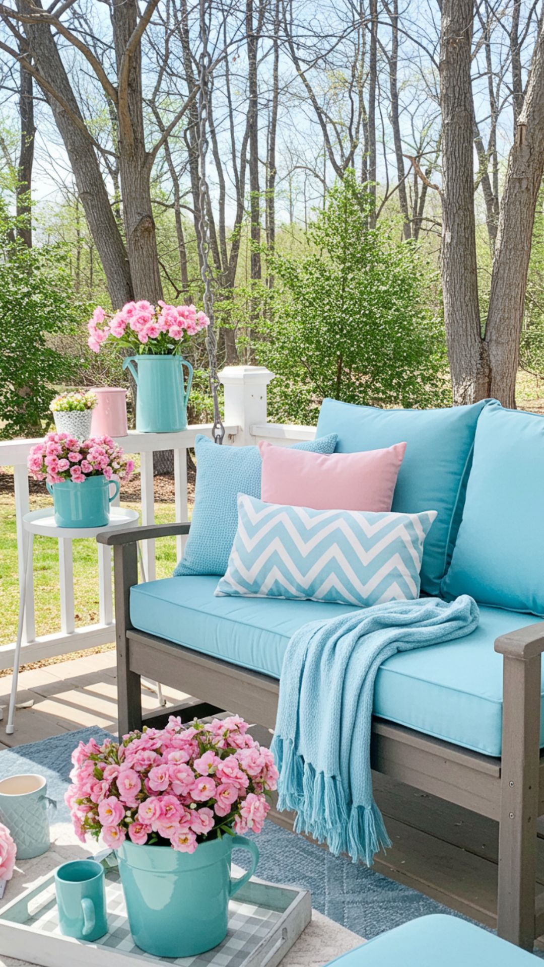 As spring approaches outdoors should reflect seasonal beauty too! Consider adding patio furniture cushions or decorative pillows available in softer tones outside—this transforms outdoor areas into charming retreats perfect for relaxation! After investing last year into some lovely sky-blue cushions for my porch swing—it became everyone’s go-to spot during sunny afternoons where laughter echoed endlessly!