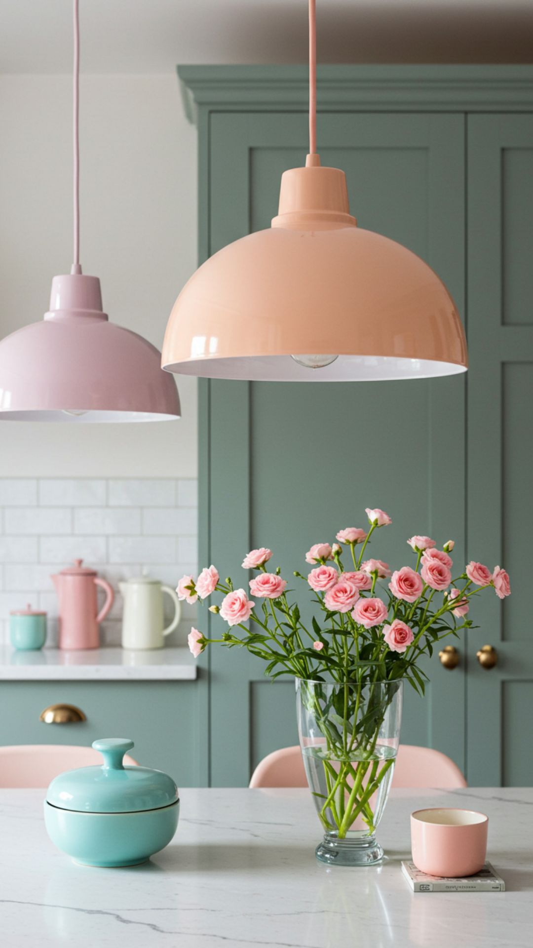 Lighting plays an essential role in setting the mood of any room. Opting for pastel-colored lampshades or pendant lights can make even ordinary spaces feel enchanting. When I hung a soft peach pendant light over my kitchen island, it illuminated the entire room in such a warm glow that even cooking became an enjoyable experience rather than just another chore!