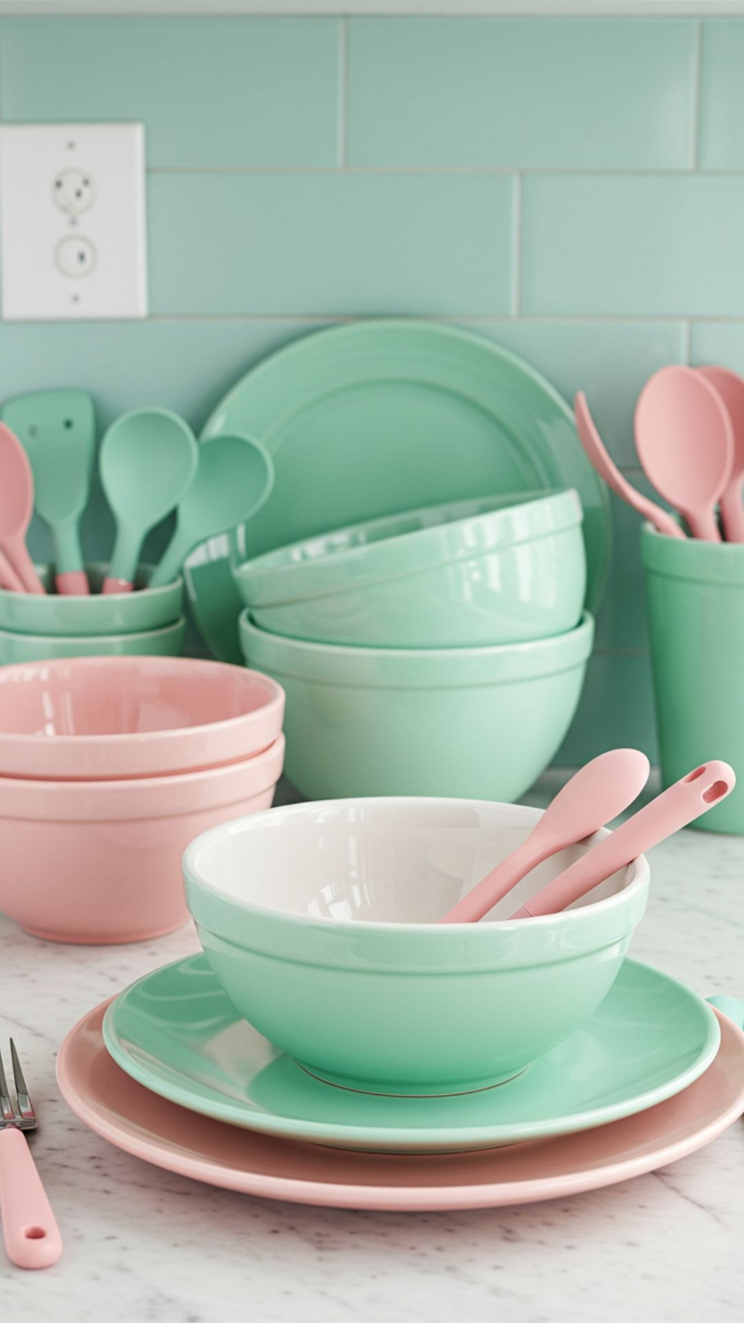 Brightening up your kitchen doesn’t have to stop at paint; choose fun pastel kitchenware like bowls, utensils, or dishware for playful touches while cooking or entertaining guests. When I switched out my standard white dinner plates for cheerful mint green ones last summer, each meal felt festive—even leftovers took on new life! My family couldn’t help but smile at every meal served on those vibrant dishes.